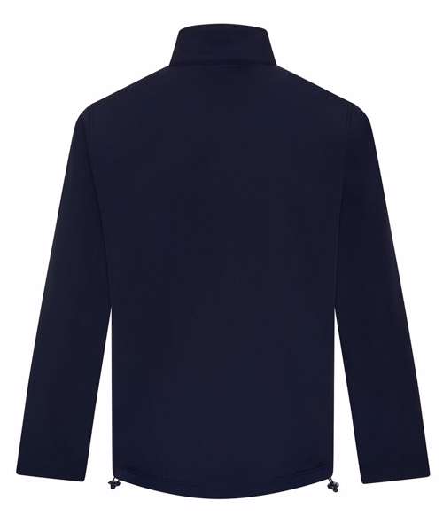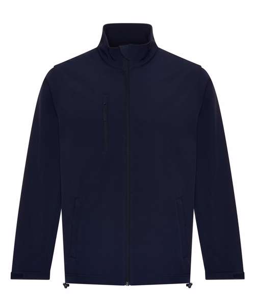 Standard fit. Full-zip front. Zipped chest and side pockets. Printable three-layer binded softshell fabric. Chinguard. Internal storm flap. Adjustable shock cord hem. Windproof and showerproof.