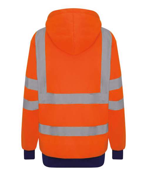 Certified EN ISO 20471:2013+A1:2016. RIS-3279-TOM ISSUE 1:2016 (Orange only). HV Orange/Navy & HV Yellow/Navy - Class 3. Double fabric hood with adjustable drawcords. Ribbed contrast colour cuff and hem. Inner fabric brushed fleece. Over shoulder, around arm and body reflective tape.