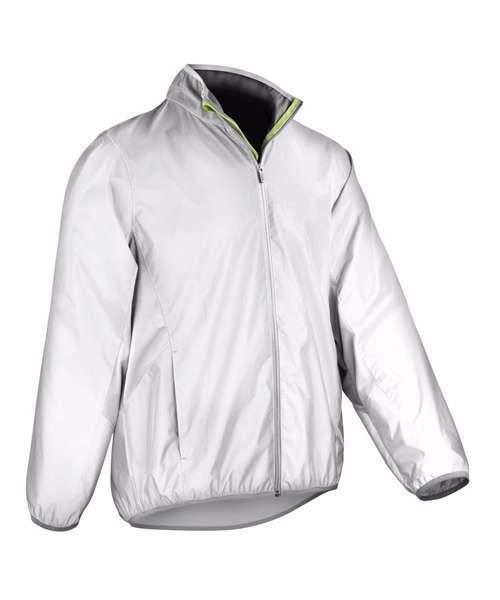 Luxurious highly visible sports jacket with 'ghost' effect 360 degree luminescence for optional roadside awareness. Windproof and showerproof. EN ISO20471:2013 CLASS 2.