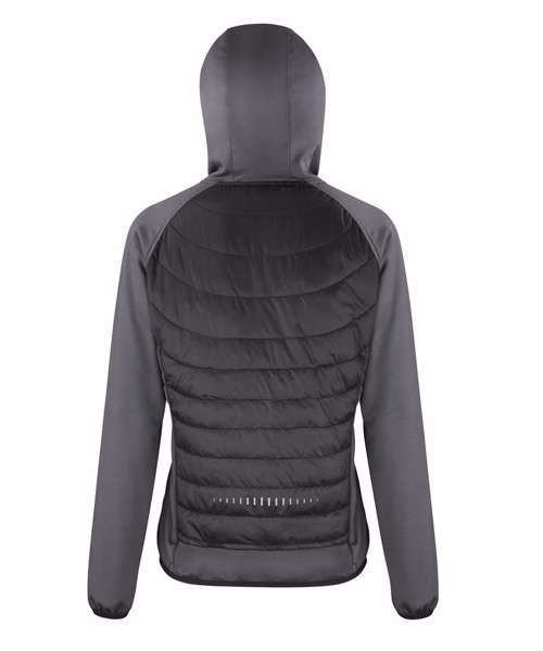 Showerproof, Breathable. Padded body feature; Anatomically curved on women's. Super stretch fabric hood and hems. Invisible zip side pockets. Bound cuff, hem and hood. Reflective detail. Thumbhole cuff. Integral hood. Quick dry. Virtually weightless, ideal layer garment. Thumbholes help top stay in place. Articulated sleeves allows full motion. Attractive padded body using faux down. Ventilated performance, lightweight insulation. Super-Stretch fabric and ergonomic seams allow natural movement.