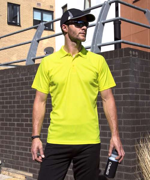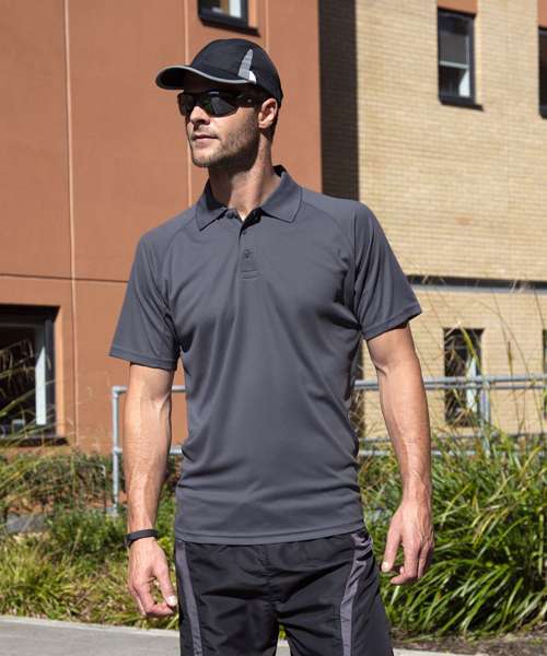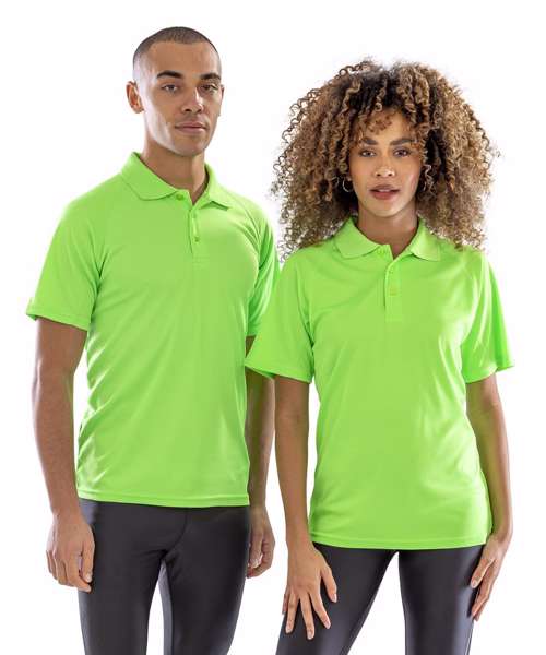 Air dry, soft mesh fabric polo with High-Tec stretch, brilliant retention and superior drape.