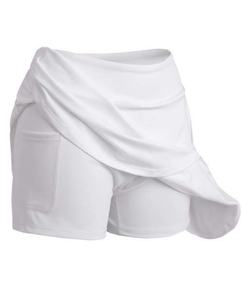 Classic, high-waist, flared, women’s skirt with integral short for tennis and all court sports. With two pockets, this high-stretch recycled fabric offers flattering drape and flare.