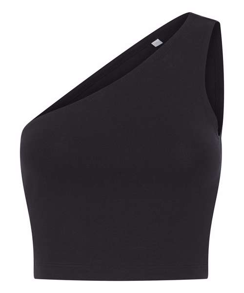 A one-shoulder cropped top with a fitted neckline that’s ultra-flattering on the shoulders. High fashion – high impact. Brand free for easy rebranding.