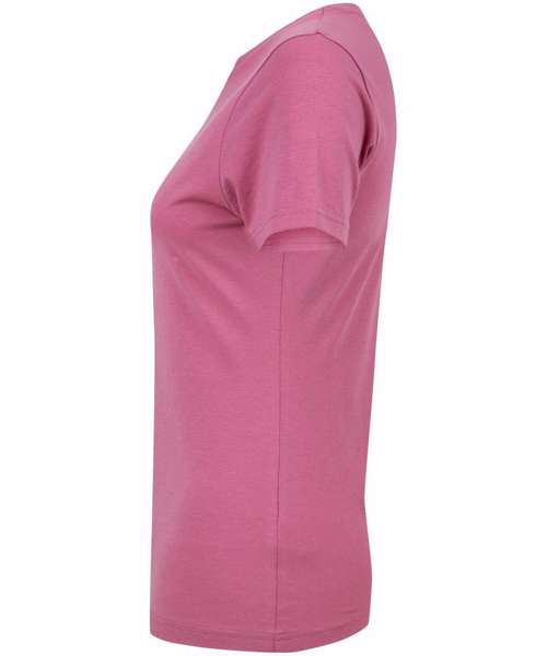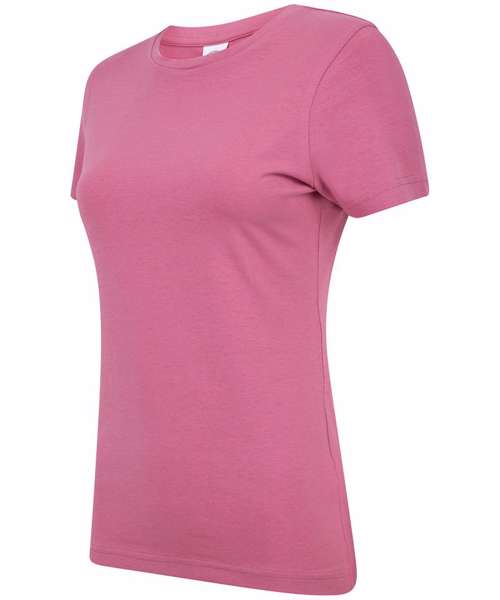 Feel good women's stretch t-shirt with enzyme wash for unique soft hand-feel. 96% cotton, 4% elastane for improved fit, comfort and shape retention. Modern long-line fit. Crew-neck with back neck binding and soft stretchy rib neckline. Features tear out label.