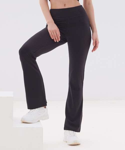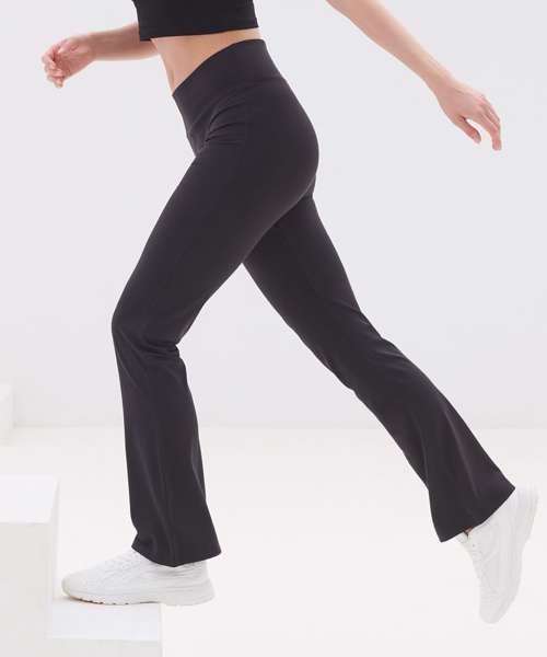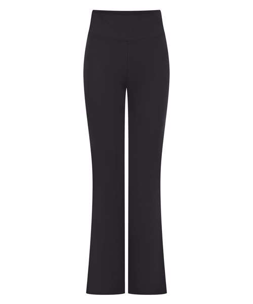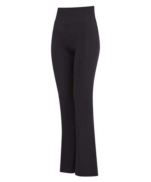 Women’s high-waist flared leggings. Soft-touch fabric. Self-fabric waistband with internal elastic band. Hidden pocket in rear waistband. Twin-needle stitched hem. Gusset panel at crotch. Front and back rise seams. Non-transparent. Tear-out label for easy rebranding.