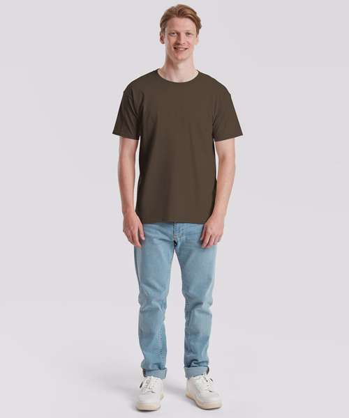 100 % combed ringspun cotton. Soft hand feel. Performs at 60 degree wash. Crew neck with cotton/Lycra® and twin needle stitching. Self-fabric shoulder-to-shoulder taping.