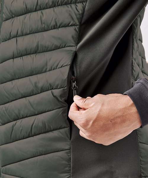 Pure Earth by STORMTECHâ„¢. Durable, PFC-free, water-repellent finish. Combination of broken fibre fill and polyfill. Adjustable hem. Zipped hand pockets with brushed tricot. Decoration access. STORMTECH Thermolexâ„¢ high loft synthetic down. High-performance windproof outer shell. Contrast single-layer stretch side panels. Partial elasticised armhole trim. Internal mesh stash pockets.