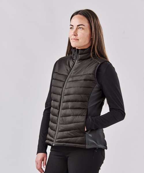 Pure Earth by STORMTECH™. Durable, PFC-free, water-repellent finish. Combination of broken fibre fill and polyfill. Adjustable hem. Zipped hand pockets with brushed tricot. Decoration access. STORMTECH Thermolex™ high loft synthetic down. High-performance windproof outer shell. Contrast single-layer stretch side panels. Partial elasticised armhole trim. Internal mesh stash pockets.