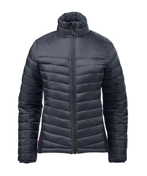 Pure Earth by STORMTECH™. STORMTECH Thermolex™ high loft synthetic down. Durable, PFC-free, water-repellent finish. High-performance, windproof outer shell. Combination of broken fibre fill and polyfill. Contrast single layer stretch side panels. Adjustable hem with drawcord. Elasticised cuffs. Zipped hand pockets with brushed tricot. Internal mesh stash pockets. Internal full-length storm flap with chin saver. Decoration access.