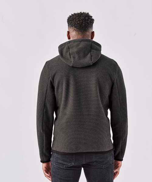 Pure Earth by STORMTECHâ„¢. Ultra-soft, ottoman-knit fleece shell. Full-coverage, easy-lock, adjustable, three-piece hood. On-seam zipped handwarmer pockets. Contoured side panels. Brushed tricot hood facing. Cuffs and hem. Adjustable hem. Low-profile chin saver.
