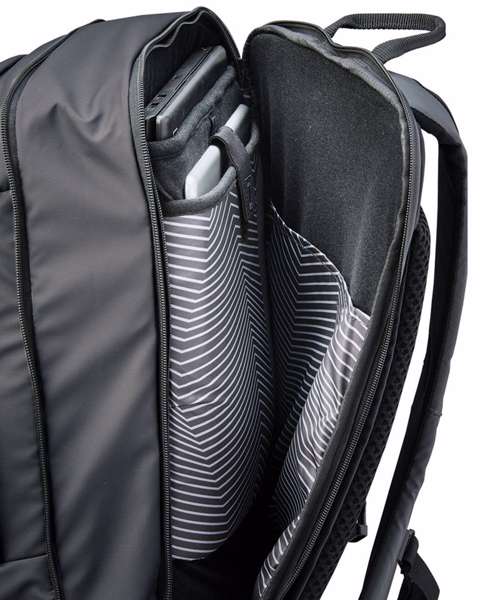 Waterproof fabric polyester taffeta lining with Polygiene® freshness technology. Large main opening with two-way waterproof zip. Large accessories pocket with secure zip closure. Expands to 35 litres. RFID blocking pocket, padded. Ergonomic and stowable adjustable shoulder straps with rolled edge for comfort. TSA carry-on size. Adjustable sternum strap. Easy-access laptop and tablet compartment. Ultra-soft padded air mesh back panel. Rolling luggage compatible. Reinforced top and side carry handles. Zipped water bottle pocket. Internal zipped mesh pocket. Internal key clip. Fits up to 16” laptop. Decoration access. Dimensions: 19" (H) x 12" (W) x 6" (D), expanded 19" (H) x 12" (W) x 9" (D). Volume: 25 litres/1,525 cubic inches, expanded 35 litres/2,136 cubic inches.
