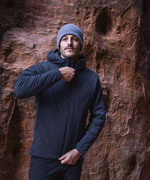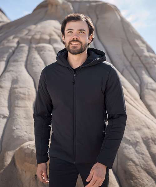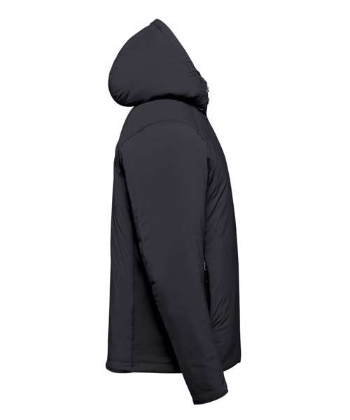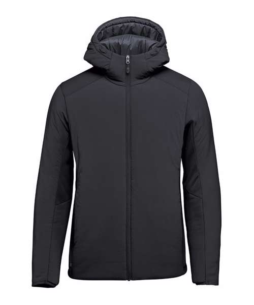 Stormtech Thermal Shellâ„¢ insulation. Durable water-repellent finish. High-performance stretch woven outer shell. Full-coverage attached hood with easy-lock adjustment. High-density brushed-back knit panels. Articulated elbows. Underarm gussets. Zipped on-seam handwarmer pockets. Single-hand hem adjustment. Partially elasticised cuffs. Contoured seaming. Contains recycled materials.