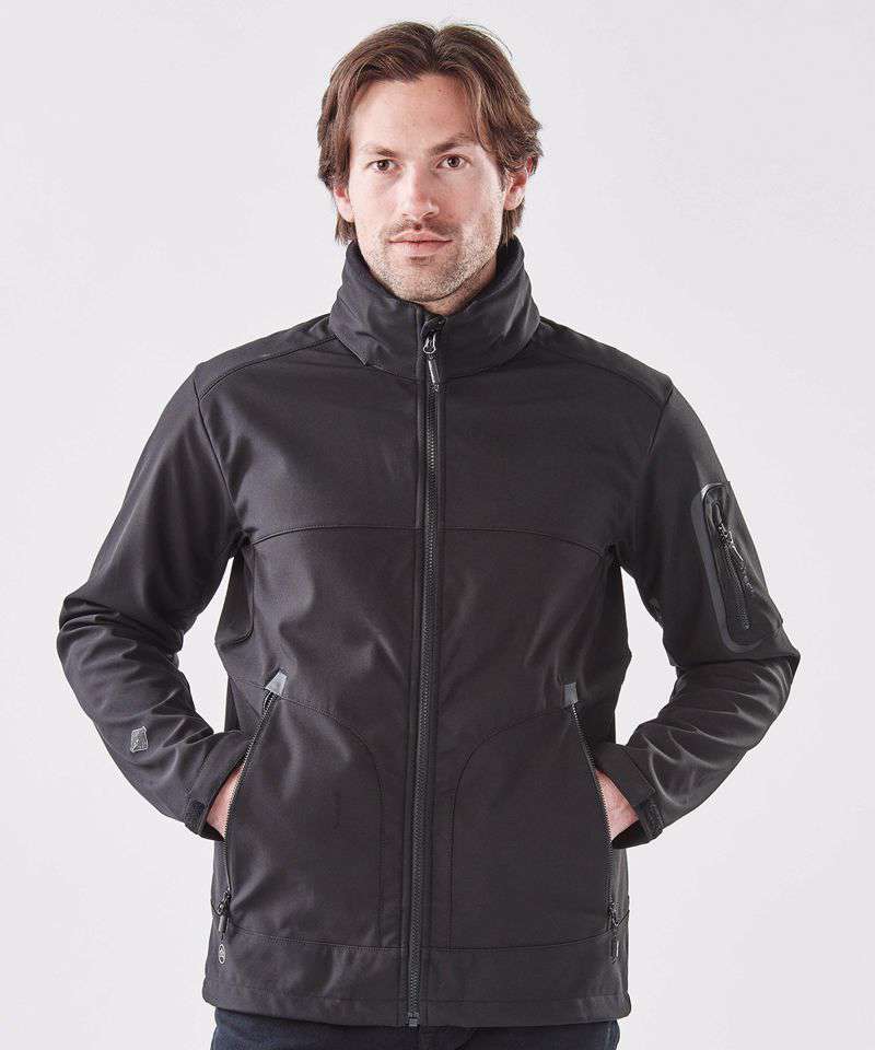 STORMTECH H2XTREME® 5000/5000 waterproof/ breathable outer shell. 4-Way stretch fabric. Self-fabric adjustable cuff tabs. Adjustable drawstring hood. Adjustable stowable hood. Adjustable collar opening. Adjustable hem. Dropped back. Set-in sleeves. Zippered pockets. Chin saver. Internal full-length storm flap. Internal media port. Internal zippered security pocket. Embroidery access.