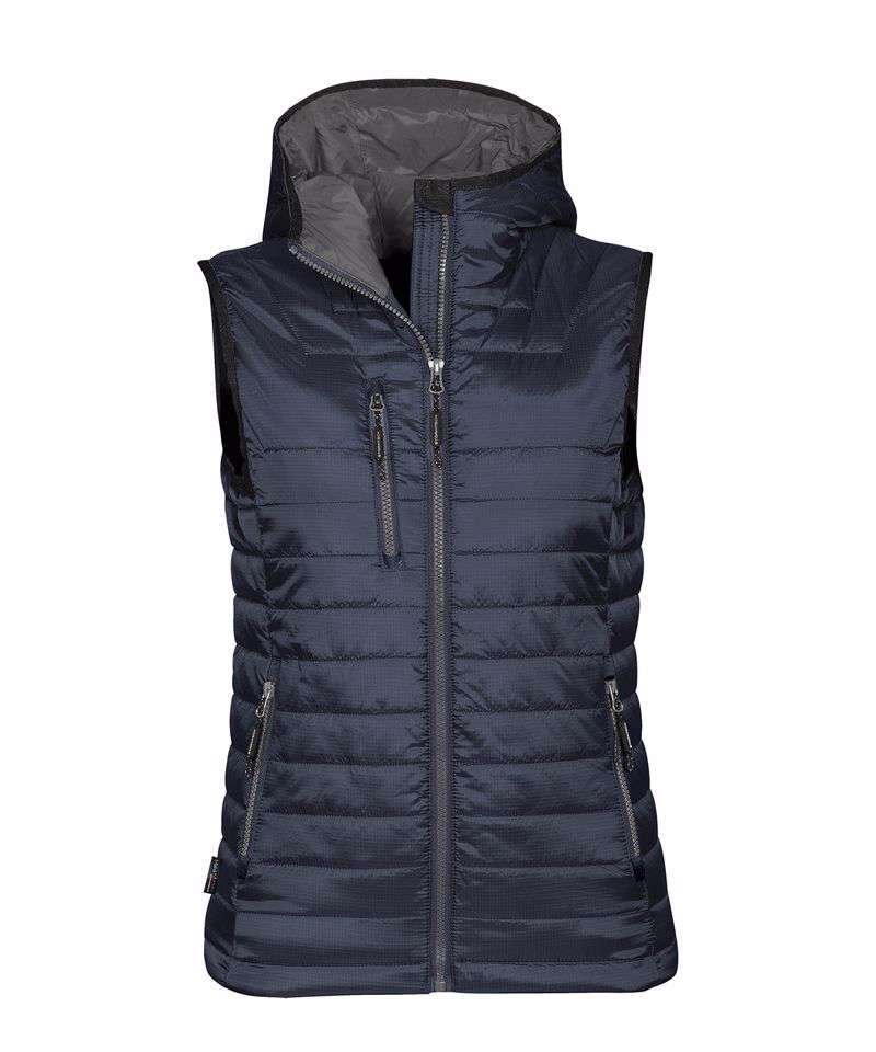 STORMTECH D/W/R durable water-resistant outer shell. Quilted body with ultra soft liner. Centre front vilson zipper with contrast zipper teeth. Attached hood. Adjustable hem. Brushed tricot hand warmer pockets. Zippered pockets. Chin saver. Internal full-length storm flap. Inside pocket. Embroidery access.