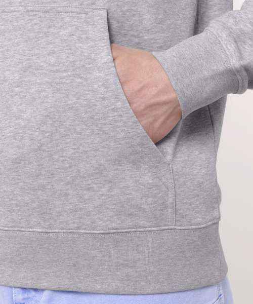 Unisex medium fit hoodie sweatshirt. Set-in sleeve. Double-layered hood in self-fabric. Round drawcords in matching body colour with closed metal tipping. Inside herringbone back neck tape. Self-fabric half-moon at back neck. 1x1 rib at sleeve hem and bottom hem. Armhole, sleeve hem and bottom hem with twin-needle topstitch. Kangaroo pocket at front.