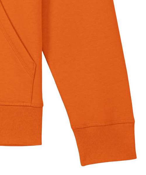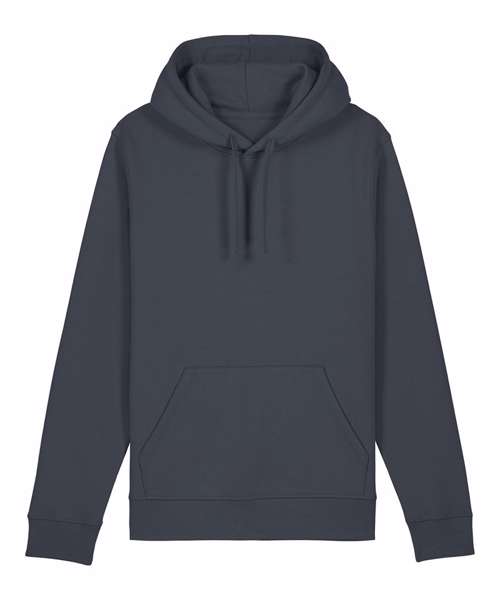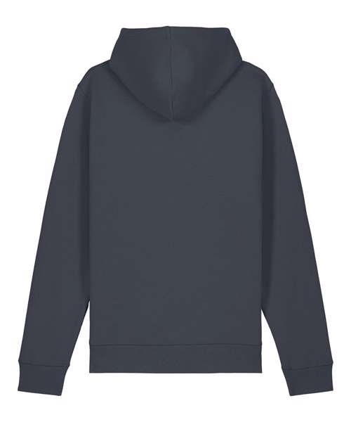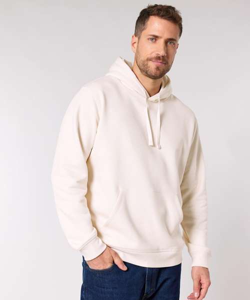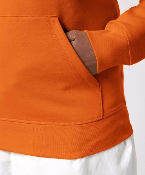 Essential unisex hoodie sweatshirt in medium fit with set-in sleeve. Self-fabric lined hood. Flat drawcords in matching body colour. Stitched buttonhole eyelets. Inside herringbone back neck tape. Self-fabric half moon at back neck.1x1 rib at sleeve hem and bottom hem. Flatlock topstitch on all seams. Kangaroo pocket with flatlock topstitch.