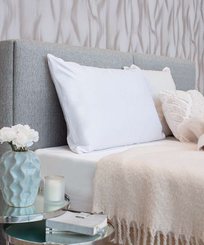 Satin pillowcase. One standard size (50cm x 75cm). Concealed zip opening. Fabrication has benefits for haircare and skincare. Soft hand feel fabrication. Ideal gifting product. Can be sublimation printed. Not suitable for children.