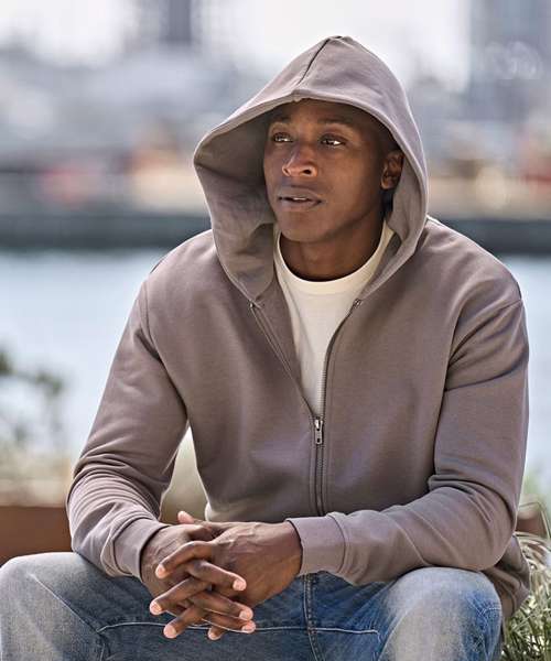 Say hello to timeless comfort in the Urban hooded full-zip sweatshirt – a relaxed classic with an urban edge. Crafted from certified organic cotton and certified recycled polyester, its silicone treatment presents a soft feel and premium quality. Small details include ribs with elastane, an SBS zip, a brushed inside and a half-moon in the neck for easier personalisation.
