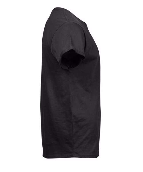 Fashion loose fit. Shoulder-to-shoulder neck tape. Double pre-shrunk. Long-fibre cotton. Enzyme-washed. Silicone treatment. Large neck opening with slim neck rib.