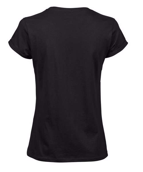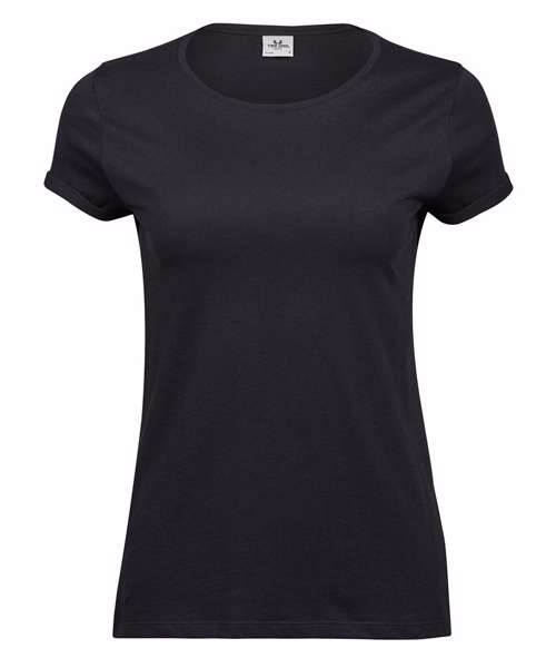 The fashion-fit, single Jersey, Women’s roll-up tee is made from premium quality, long-fibre cotton. It features roll-up sleeves with bar tacks and a large neck opening with a minimalistic neck rib.