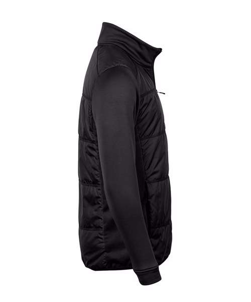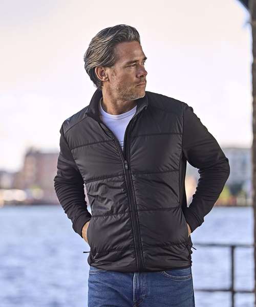 The Hybrid-stretch jacket is made from 300T polyester fabric combined with stretch fleece panels and sleeves. It’s insulated with premium DuPont™ padding on the body, with cuffs and elastic banding at the bottom hem for a modern look. It features quality SBS zips, an inner pocket and two large hidden front pockets.