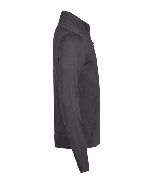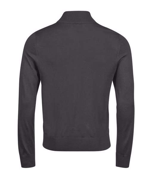 Tailored fit. Full-zip. Fully fashioned. SBS zip. Knitted rib at hem and cuffs. 30˚C washing on wool programme. Quality Italian merino/polyacrylic yarn.