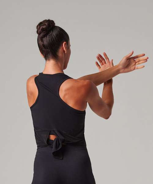 This women's open back vest mixes innovation and style to create the perfect garment for both working out and hanging out. The long back with split can be worn open or tied up for maximum versatility.