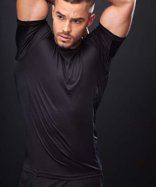 Slim fit t-shirt, 2 piece sports crew neck, shaped raglan sleeves, mesh side panels and back yoke.