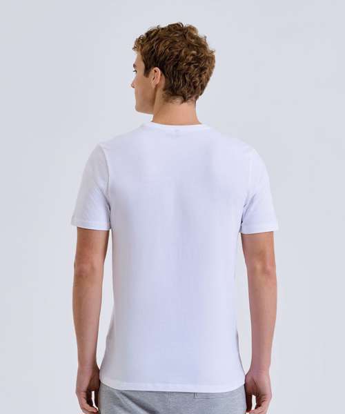Organic cotton fabric. Crew neck. Short sleeve. Lightweight. Twin-needle stitching on hem and arms. The product contains no branded neck or waist label. Removable kimble or looped garment tags. The inner seam label holds important product information on one label with a second label containing brand information which can be cut-away.