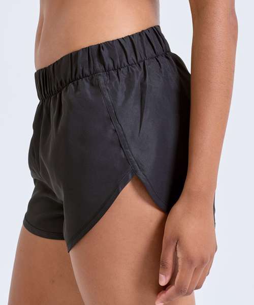 Wicking fabric. Elasticated waist. Inner liner brief for support. High thigh length. Lightweight. Zip pocket to back for storing essentials. Binding detailing to hem and sides of shorts. We recommend using block out vinyl and inks.Product contains no branded neck or waist label. Removable Kimble or looped garment tags. Inner seam label holds important product information on one label with a second label containing brand information which can be cut-away.