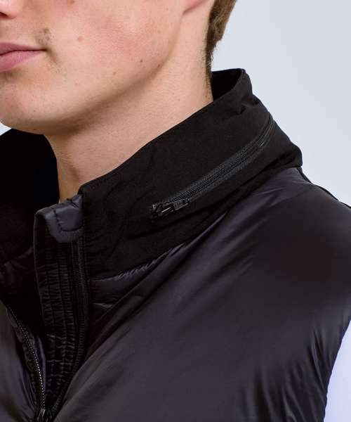 Hybrid gilet with padded panel upper chest and side seams. Lower jacket is shell fabric. Full zip-through style with collar. Drawcord inner hem. Zip side pockets. Concealed packable hood with adjustable cord and toggle to the back for to create a snug fit. Zip embroidery access to back panel and left chest. Inner pocket to left chest. Internal storm flap with zip guard. Packable bag included for handy storage of gilet when not in use. We recommend using block out vinyl and inks.Product contains no branded neck or waist label. Removable Kimble or looped garment tags. Inner seam label holds important product information on one label with a second label containing brand information which can be cut-away.