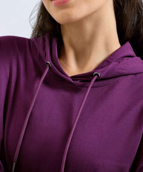 The perfect throw-over, whether you are just getting going or winding down. The women's TriDri® cropped hooded t-shirt has a boxy, cropped fit, it’s the pull-over you’ll always want in your gym bag.