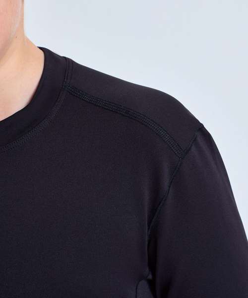 Stretch top. Crew neck. Long sleeve. Lightweight. Twin-needle stitching on hem and arms. We recommend using block out vinyl and inks.Product contains no branded neck or waist label. Removable Kimble or looped garment tags. Inner seam label holds important product information on one label with a second label containing brand information which can be cut-away. UPF 40+.