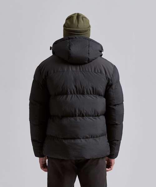 Made with 100% recycled materials. Bonded full-length zip. Chin guard. internal rib knit cuffs. Bonded zip detailing. Three-panelled hood with adjustable toggles. Two bonded zip side pockets. One internal pocket. Square back neck buggy. Removable recycled zip pull.