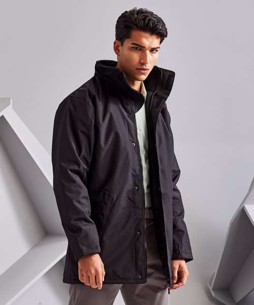 Warm and versatile parka jacket. Water resistant. Wind resistant. Warm polyfill quilted lining. Concealed adjustable storm hood. Full zip with storm flap. Snug, fleece lined collar with chin guard. Storm cuffs. Two zippered front pockets. Two interior pockets. Decoration flexible concealed interior zip for decoration access. Easy re-label system. Product contains no branded neck label.* Removable Kimble or looped garment tags. Inner seam label holds important product information on one label with a second label containing brand information which can be cut-away.