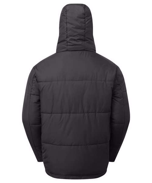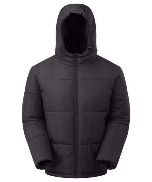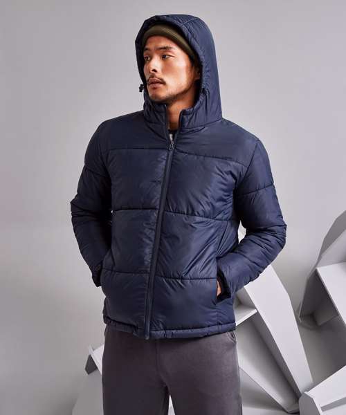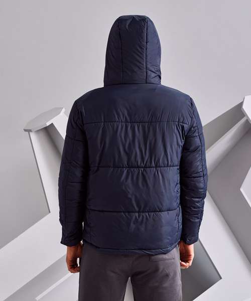 Reverse coil zip on centre front with signature zip pull. Quilted horizontal stitched wide baffles. Quilted hood with adjustable function. Fully lined in Tonal Polyester. Tonal elasticated cuffs. Internal zipped opening for embroidery access. Side pockets. Product contains no branded neck label.* Removable Kimble or looped garment tags. Inner seam label holds important product information on one label with a second label containing brand information which can be cut-away.