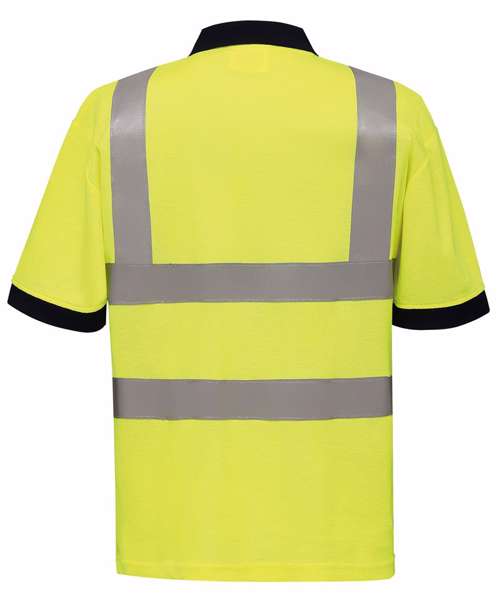 Short sleeve polo shirt with 2 reflective band & braces. Navy contrast collar and cuffs make our Polo shirt stand out. 3M® reflective tapes complements our polo making it look and feel great.