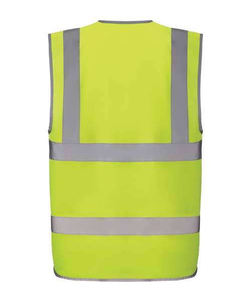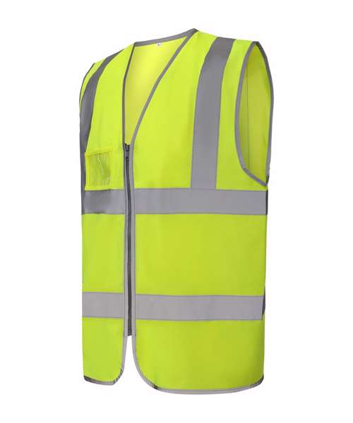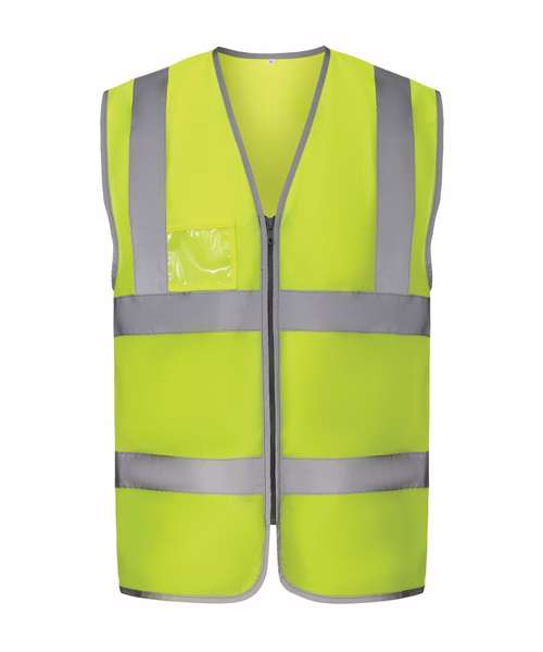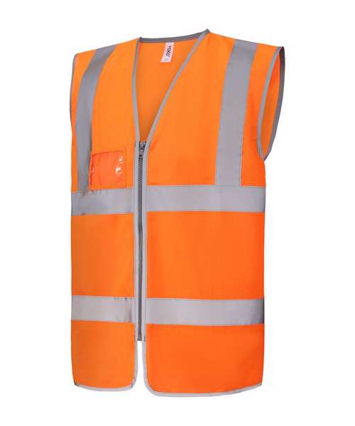 Conforms to EN ISO20471:2013 Class 2. Hi-vis Orange also conforms to RIS-3279-TOM. Proudly made of recycled polyester, with features including reflective borders, zip fastening and an ID pocket, with reinforced stitches around the zip and ID pouch. Full-length matching-colour zip ensures secure fastening. Great size choices. Large decoration area for logos and branding.