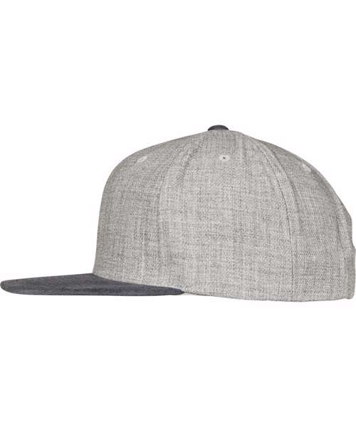 Melange velour snapback. Retro style. Mottled outer fabric. Soft-contrasted, flat visor. Integrated snapback closure.