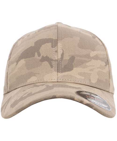 Flexfit light camo. Proven Flexfit shape. Pre-bent visor with decorative stitching. Delicate pastel camo pattern.