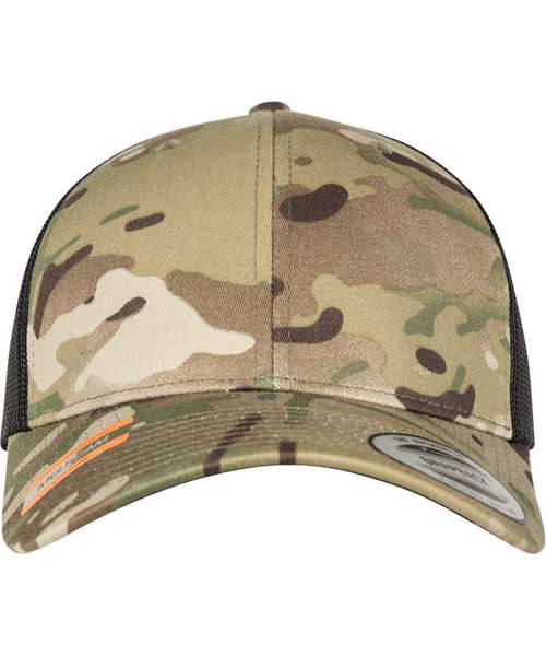 Retro trucker Multicam® cap. Casual camo print in combination with soft but durable mesh. Integrated snapback closure.
