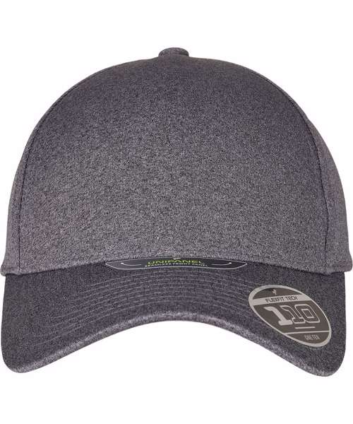 The masculine cap is a flexible all-rounder in form, colour and function. It enters the fashion stage mottled and with an undervisor in contrasting color. The visor itself is pre-curved and eightfold quilted. An eye-catcher is the seamless front panel. Tried and tested Flexfit 110 technology and a handy hook and loop fastener offer an optimum fit. The 110 Melange Unipanel cap – a street accessory that always fits.